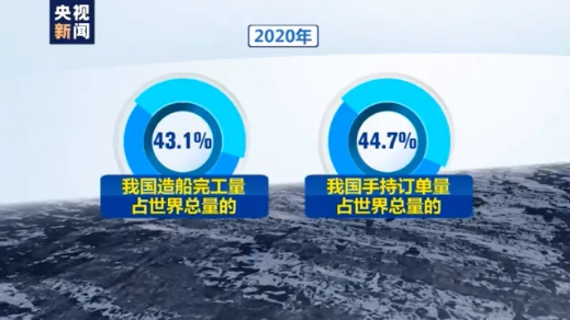 據(jù)統(tǒng)計(jì),2020年,我國(guó)造船完工量和手持訂單量,分別占世界總量的43.1%和44.7%,繼續(xù)在國(guó)際市場(chǎng)份額中繼續(xù)領(lǐng)先。
