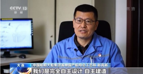 中國船舶大船集團首艘國產(chǎn)航母總工藝師 趙育新:從第一次海試到最后交付,在這一年半的時間里沒有休息的,連軸(日以繼夜)地在這個工程上,一起拼搏。