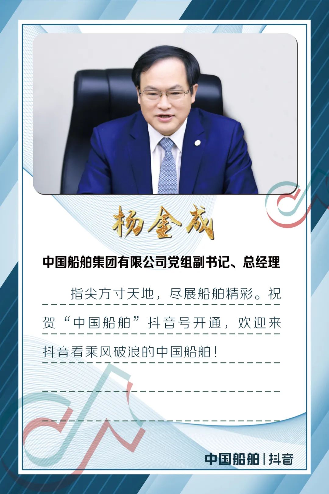今天,中國船舶官方抖音平臺正式開通,是集團公司構建全媒體宣傳矩陣的重要舉措,是社會各界關心海洋、認識海洋、經略海洋的重要平臺,是弘揚軍工精神和中國船舶“三大精神”的重要陣地。