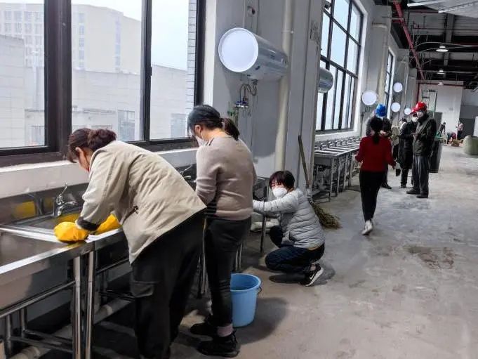 工程深度清潔團隊也吹響了“集結號”。上海公司所屬華船公司派出的清潔保障團隊,制訂了“先立面后地面”兩步走的清潔方案,克服了沒有接通自來水、施工進度不可預估等困難,堅持吃在工地、睡在工地,在不到48小時的時間硬是把11000平方米、284間房間、1136張病床的深度保潔任務攻了下來。