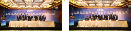 ????主要簽約項(xiàng)目包括:中國(guó)船舶集團(tuán)所屬重慶川東船舶重工有限責(zé)任公司與中遠(yuǎn)海運(yùn)(上海)有限公司1.38萬(wàn)噸不銹鋼化學(xué)品船項(xiàng)目;中國(guó)船舶集團(tuán)所屬大連船舶重工集團(tuán)有限公司與招商輪船VLCC項(xiàng)目;中國(guó)船舶集團(tuán)所屬上海外高橋造船有限公司與工銀租賃21萬(wàn)噸散貨船項(xiàng)目、外高橋造船與EPS公司20.9萬(wàn)噸雙燃料散貨船項(xiàng)目;中國(guó)船舶集團(tuán)所屬江南造船(集團(tuán))有限責(zé)任公司與太平洋氣體公司VLEC項(xiàng)目、江南造船與 SINOGAS86000立方米VLGC項(xiàng)目、江南造船與UECC公司3600車(chē)汽車(chē)滾裝船項(xiàng)目、江南造船與派格達(dá)克公司22000方乙烯船項(xiàng)目;中國(guó)船舶集團(tuán)所屬?gòu)V船國(guó)際有限公司與斯坦納公司5萬(wàn)噸甲醇雙燃料油船項(xiàng)目、廣船國(guó)際與EPS公司LNG雙燃料蘇伊士油船項(xiàng)目、中國(guó)船舶集團(tuán)所屬滬東中華造船(集團(tuán))有限公司與MOL18600立方LNG加注船項(xiàng)目;中國(guó)船舶集團(tuán)所屬武船集團(tuán)青島北海船舶重工有限責(zé)任公司與中國(guó)船舶集團(tuán)所屬中船租賃21萬(wàn)噸散貨船項(xiàng)目、中國(guó)船舶集團(tuán)所屬中船澄西船舶修造有限公司與國(guó)銀租賃85000噸散貨船項(xiàng)目、重慶川東船舶重工與重慶冠達(dá)世紀(jì)游輪650客游輪項(xiàng)目;中國(guó)船舶租賃與 Golar LNG 船舶改裝融資租賃項(xiàng)目、中國(guó)船舶租賃與SINOGAS86000立方米VLGC融資租賃項(xiàng)目;中船租賃與山東海運(yùn)21萬(wàn)噸散貨船融資租賃項(xiàng)目、中船租賃與Navig 8 成品油船聯(lián)合投資協(xié)議、中船租賃與新加坡星展銀行VLCC融資協(xié)議。