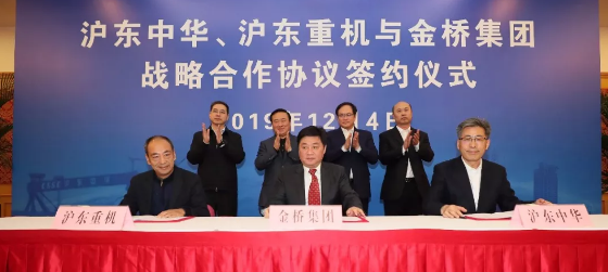 ????在楊金成、翁祖亮、馮永強、杭迎偉的共同見證下,中國船舶集團旗下滬東中華造船(集團)有限公司、滬東重機有限公司與上海金橋(集團)有限公司簽訂了戰(zhàn)略合作協(xié)議。