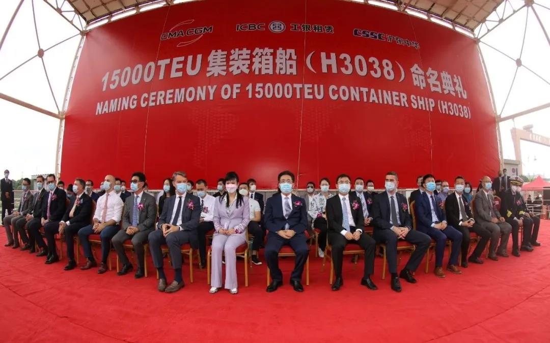 8月27日,由中國船舶集團有限公司旗下滬東中華聯合中船貿易為法國達飛海運集團建造的15000TEU超大型集裝箱系列船首制船“達飛·和風”號命名交付。這是中法兩國船海巨頭全面落實2019年中國國家主席習近平和法國總統馬克龍見證簽署的戰略合作框架協議的最新成果。同時,也標志著“CSSC超大型箱船譜系”又添“新丁”,實現了對全球超大型集裝箱船發展的引領。