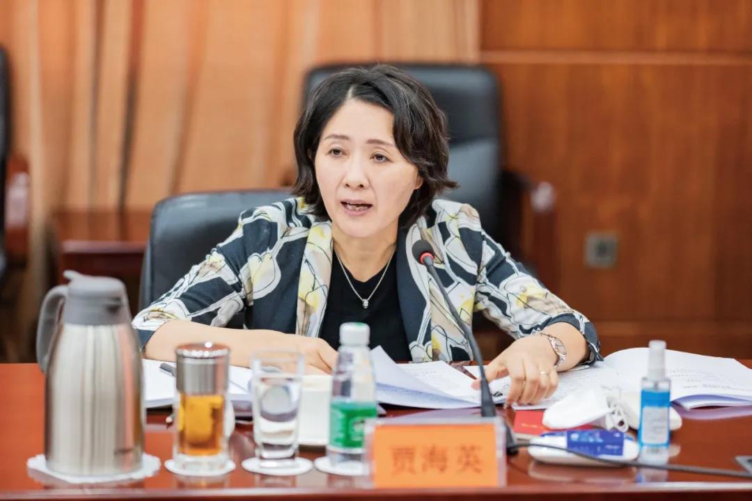 中國船舶集團黨組成員、總會計師、黨史學習教育領導小組副組長賈海英作主題發言。