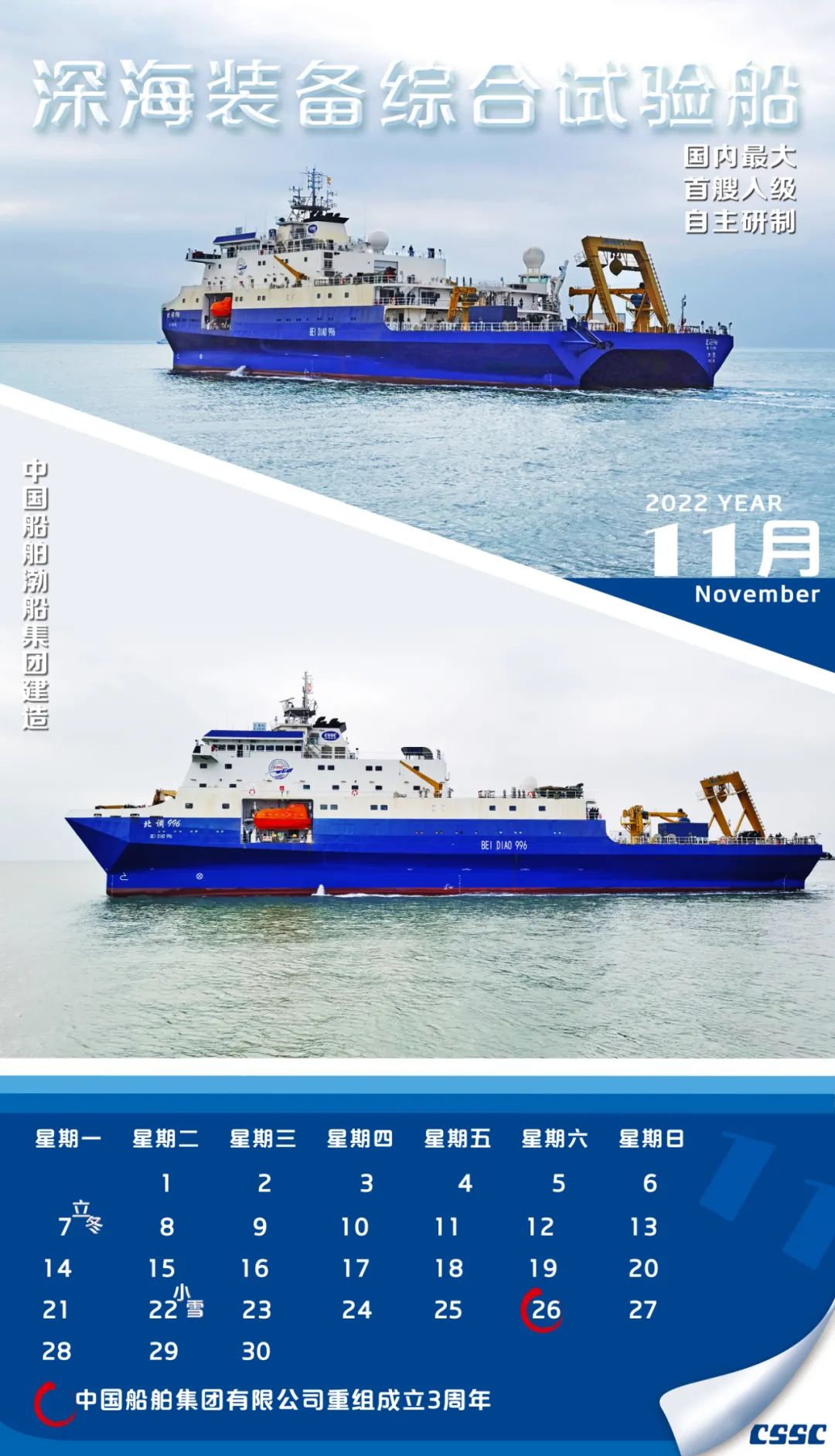 ★ 2022年11月26日,中國(guó)船舶集團(tuán)有限公司重組成立3周年。