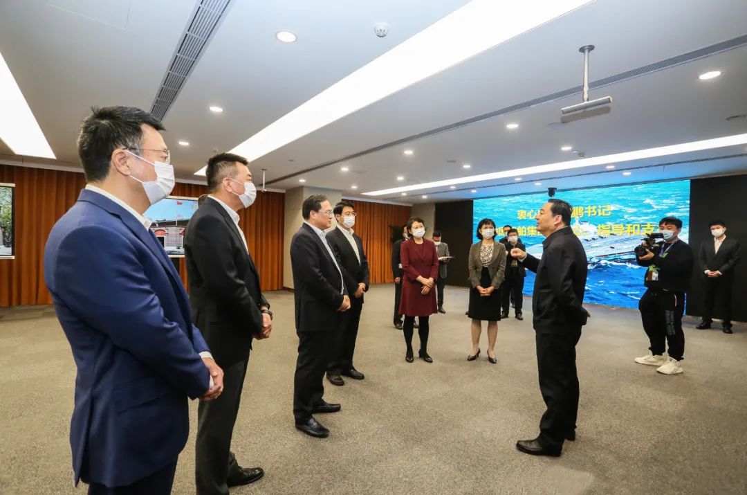 11月5日,國務院國資委黨委書記、主任郝鵬到中國船舶集團有限公司調研指導工作,緊密結合國資央企實際宣講黨的二十大精神,對企業認真抓好黨的二十大精神學習宣傳貫徹工作進行調研指導。中國船舶集團黨組副書記、總經理楊金成,黨組副書記、董事杜剛,黨組成員、副總經理孫偉,紀檢監察組組長、黨組成員李佳穎,黨組成員、總會計師賈海英,黨組成員、副總經理盛紀綱,國資委辦公廳主任殷長波、國資委綜合研究局局長董朝輝參加調研。