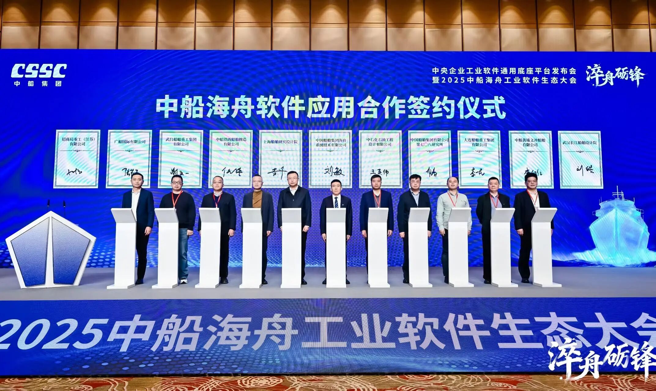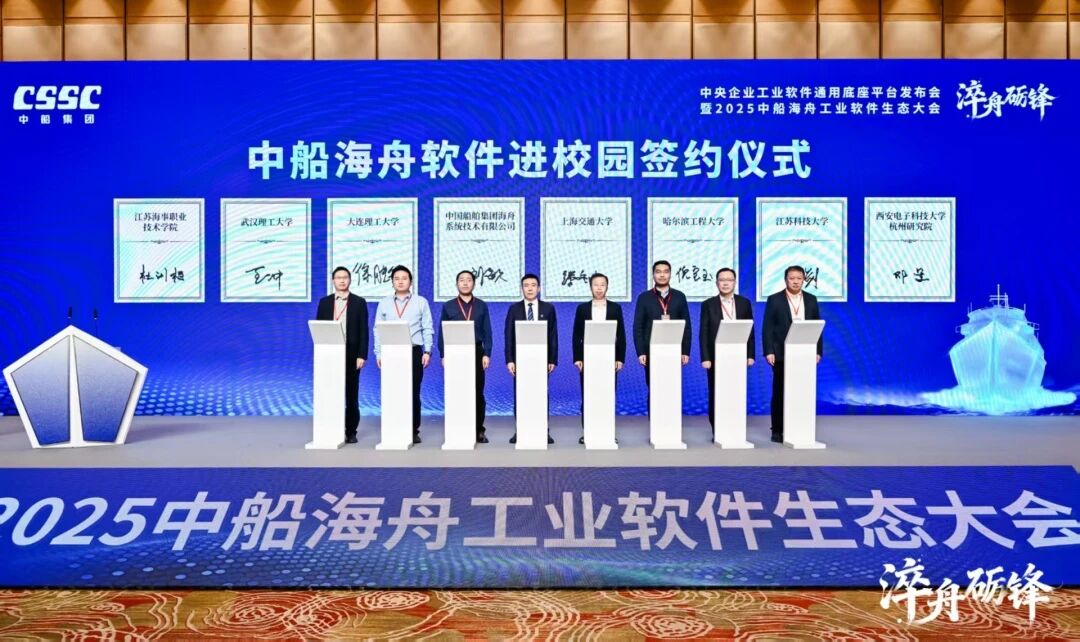 在與會嘉賓的共同見證下,中石化石油工程設計有限公司、武漢長江船舶設計院、招商重工(江蘇)有限公司以及中船集團內(nèi)7家重要生態(tài)合作單位與中船海舟完成了中船海舟軟件應用合作簽約儀式。此次簽約覆蓋船舶設計、能源裝備、海洋工程等多個重點領(lǐng)域,標志著中船海舟產(chǎn)業(yè)協(xié)同生態(tài)進入規(guī)?;?、實質(zhì)性落地新階段。