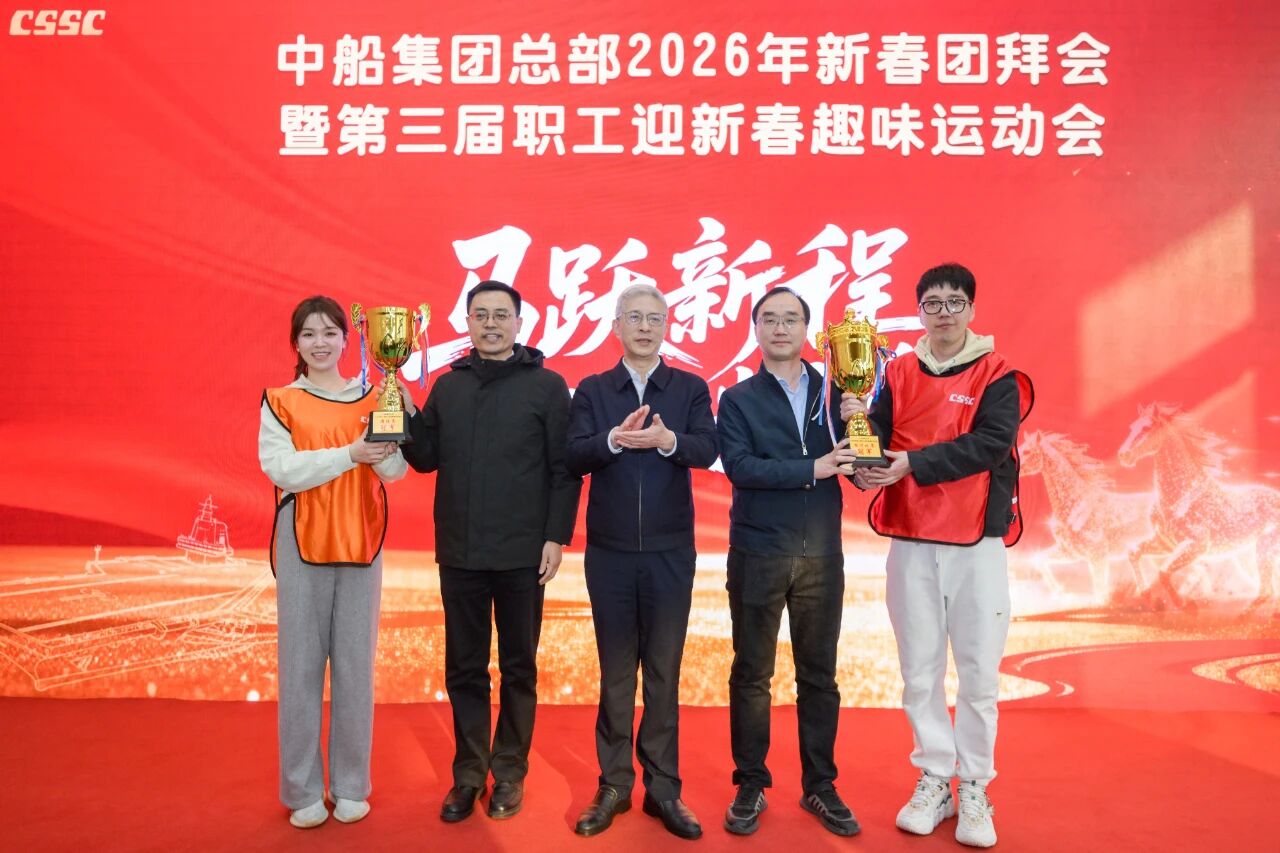金蛇辭歲,駿馬迎春。在農歷馬年新春佳節來臨之際,2月11日,中國船舶集團有限公司總部舉行2026年新春團拜會暨第三屆職工迎新春趣味運動會。中船集團黨組書記、董事長徐鵬代表中船集團黨組向辛勤耕耘、篤行實干的集團全體干部職工,向始終相伴、傾情付出的全集團家屬們,致以最衷心的感謝和最誠摯的問候。黨組副書記、董事、集團工會主席賈海英,黨組成員、總會計師朱永紅,黨組成員、副總經理彭原璞、胡賢甫出席團拜會。