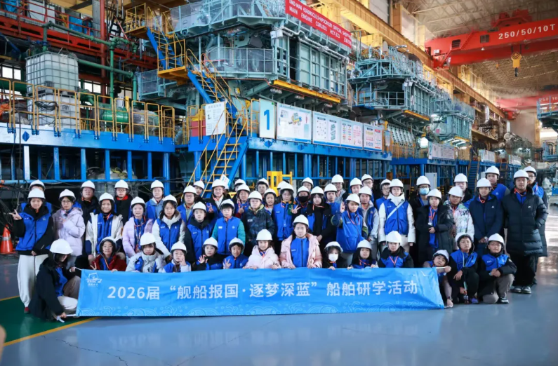從與船舶工業共生共榮的海濱城市大連,到獨具北國風情的冰城哈爾濱,少年們先后走進大連造船、中船發動機所屬大連船柴、七〇三所等“國之重器”誕生地,近距離觀摩船舶制造的精密流程,聆聽科研工作者攻堅克難的奮斗故事;從萬噸巨輪的龍骨鋪設到核心發動機的匠心鍛造,從船舶科技的迭代升級到海防力量的穩步增強,在直觀感受中深化對“海洋強國”戰略的理解,體悟“船舶人” 熔鑄在鋼鐵艦船中的責任擔當與代代相傳的工匠精神與創新力量。