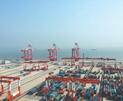 圖為洋山港四期工程(局部)。