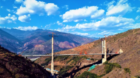 ????日前,由武船集團(tuán)武船重工股份建造的云南雙河特大橋順利合龍。該橋是一座高低塔組合梁斜拉橋,也是云南省最大的高低塔組合梁斜拉橋,索塔上部采用折H型塔,2號索塔高229米,3號索塔高170米,全橋長705.6米,總用鋼量9750噸,共計(jì)61個節(jié)段,標(biāo)準(zhǔn)節(jié)段長12米,寬28.7米,高2.8米。大橋從今年4月開始吊裝,7個多月時間,即實(shí)現(xiàn)了全橋合龍,主橋使用高強(qiáng)螺栓近18萬套,通孔率100%,大橋的合龍精度控制在2毫米以內(nèi),充分展示了武船實(shí)力和武船速度。