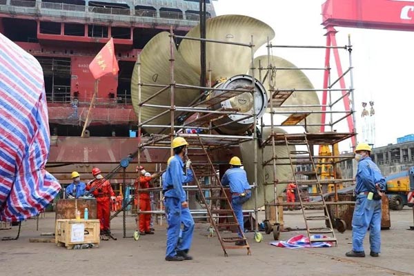 ????中國船舶集團所屬廣船國際建造的阿爾及利亞客滾船計劃3月9日拉線望光,這是該船3月底出塢的先決條件。受疫情和春節效應影響, 現場作業人員不足,前期本該完成的總組節點滯后,為了該節點順利完成,全員拼了!