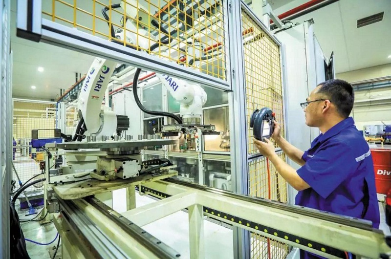 紅江工人正在監(jiān)控機器人生產(chǎn)情況。
