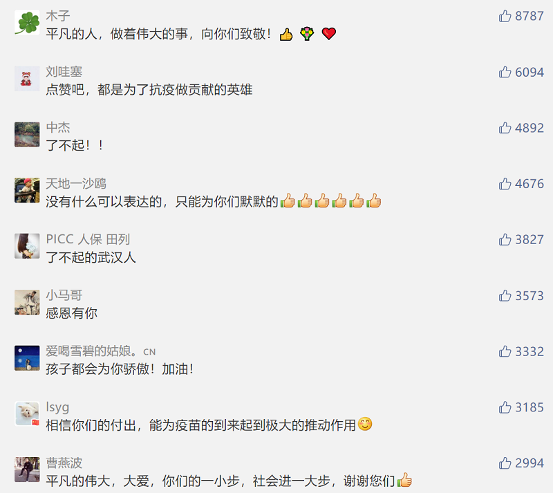 ????4月18日,人民日?qǐng)?bào)微信公眾號(hào)推送了這樣一條消息,詳細(xì)介紹了一位土生土長(zhǎng)的武漢人王璐及其家人自愿報(bào)名接種新冠疫苗的事跡,消息收獲了10萬(wàn)+的閱讀量與3.2萬(wàn)的“在看” ,還有動(dòng)輒幾千的留言點(diǎn)贊!這位女主角王璐來(lái)自中國(guó)船舶集團(tuán)七一七所,不同于第一批結(jié)束醫(yī)學(xué)觀察的志愿者,王璐所在組的年齡在20歲到50歲,是最早一批高劑量的接種者。