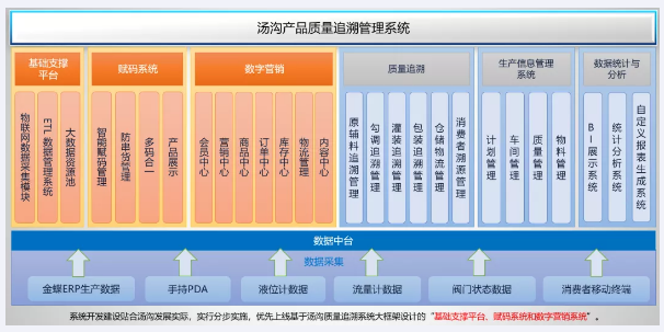 涵蓋供應(yīng)鏈管理、訂單管理、生產(chǎn)計(jì)劃排程、生產(chǎn)過(guò)程管控、智慧倉(cāng)儲(chǔ)、智慧物流、數(shù)字營(yíng)銷、質(zhì)量追溯及數(shù)據(jù)決策等企業(yè)生產(chǎn)經(jīng)營(yíng)全流程的產(chǎn)品質(zhì)量溯源大平臺(tái);