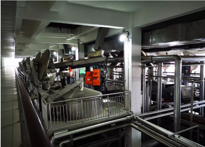 再比如古井貢酒智能釀造項(xiàng)目全自動(dòng)控制蒸糧系統(tǒng),系統(tǒng)可實(shí)現(xiàn)自動(dòng)開(kāi)關(guān)蓋及翻轉(zhuǎn)。