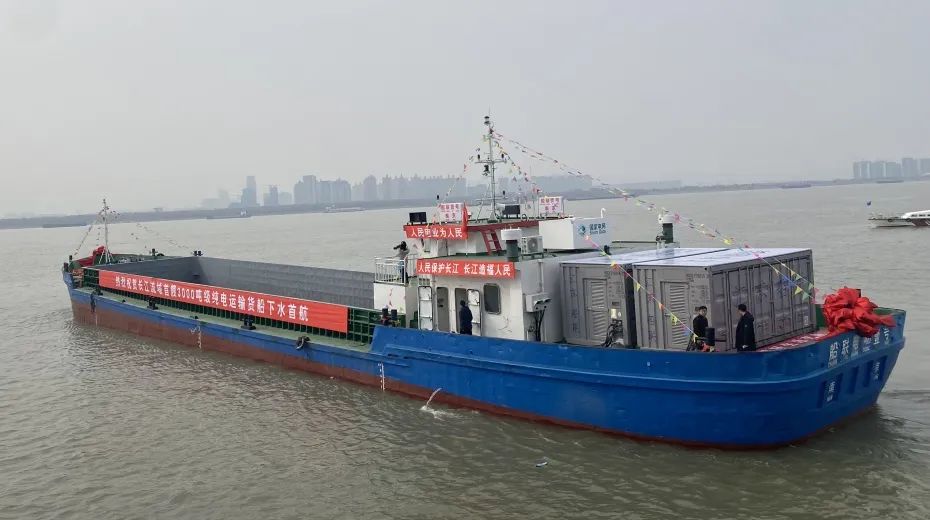“船聯(lián)1號(hào)”由國網(wǎng)江蘇省電力有限公司聯(lián)合相關(guān)部門和企業(yè)共同打造,是長江流域最大載重噸位的電動(dòng)貨船,將電能作為整艘船的唯一能源,實(shí)現(xiàn)零排放、低噪音、無污染。