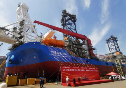 2000噸風電安裝船的艉部右舷設置2000噸繞樁式全回轉起重機,具備25兆瓦等級海上風機安裝作業能力。其樁腿長度超過130米,最大作業水深可達95米,為全電力驅動,具有DP-2 級動力定位能力。