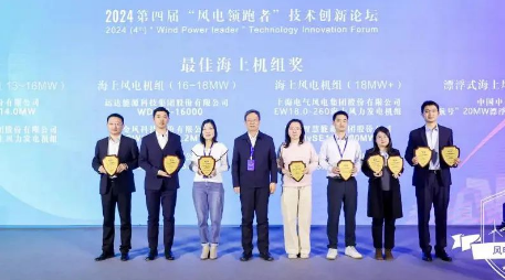開年即“開跑”,展示新“風貌”。1月9日, 2024(第四屆)“風電領跑者”技術創新論壇暨頒獎盛典在北京成功舉行,活動共評選出“風電領跑者”最佳陸上機組獎、最佳海上機組獎、最佳零部件產品獎、最佳服務產品獎和年度最佳創新獎五類大獎,中國船舶集團旗下中船科技子公司中船海裝H305-25MW海上風電機組、H220-6.XMW陸上風電機組憑借其創新設計和優異性能分別斬獲了“最佳海上機組獎”和“最佳陸上機組獎”。