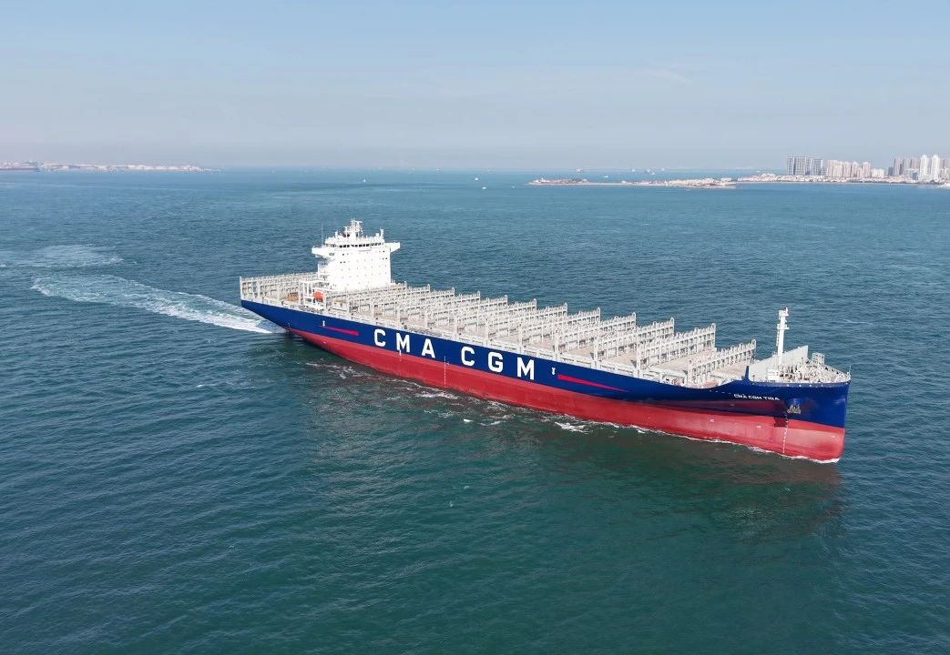 4月3日,中船集團旗下北海造船與中船貿易作為聯合賣方,為達飛海運建造的5500TEU集裝箱系列船“CMA CGM TIGA”號舉行命名交付儀式。該船的順利交付,標志著10艘5500TEU集裝箱船項目圓滿交卷,進一步鞏固了雙方長期戰略合作伙伴關系。