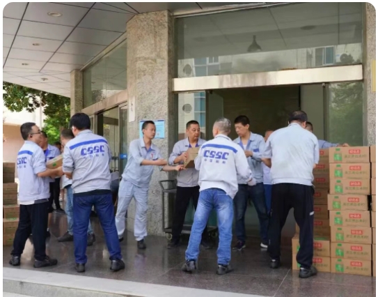 為應對持續(xù)高溫天氣,中船物資全面部署防暑降溫工作,切實保障一線員工健康安全。下屬各子公司嚴格落實安全生產責任,組織專項安全檢查,強化作業(yè)現(xiàn)場安全管理;結合不同崗位作業(yè)強度,科學制定防暑降溫方案,并通過安全教育提升員工應急處置能力。同時,積極開展“關愛員工送清涼”慰問活動,為一線員工發(fā)放藿香正氣水、清涼飲料等防暑物資,并升級改造員工休息室,改善高溫作業(yè)環(huán)境。