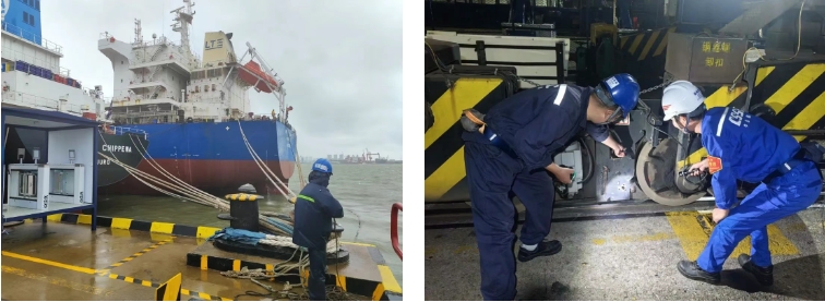 臺風肆虐時,組織管理人員抗臺值守,以“臺風不撤,我們不撤”的原則堅守一線。臺風預警解除后,10小時內(nèi)完成登船梯搭設及纜繩解除,迅速恢復正常生產(chǎn)。憑借科學預案與堅守,最終實現(xiàn)纜繩零斷裂、船舶零移位,有力保障了生命財產(chǎn)安全。