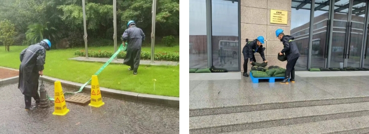 聯(lián)勤聯(lián)動,迅速構建“領導班子+部門負責人+一線員工”的高效運轉(zhuǎn)防汛指揮體系,黨員帶頭參與各園區(qū)現(xiàn)場24小時值守,在風雨中筑起守護資產(chǎn)安全與科研保障的堅實屏障;集配物資,為應對海嘯黃色警報,在前兩個月防汛防臺應急準備基礎上,迅速完成防汛物資清理,1小時內(nèi)增設調(diào)配1000個沙袋、15臺抽水泵、30套應急照明等應急物資,并依據(jù)“一點一策”方案精準部署至各個重點防汛點位;鞏固排查,及時安裝完成各類防水密封效果更好的鋁合金擋水板,在地勢低洼處加設沙袋,對戶外建筑、高處設備和樹木等進行檢查和加固,確保萬無一失。