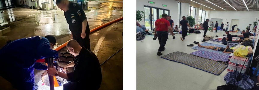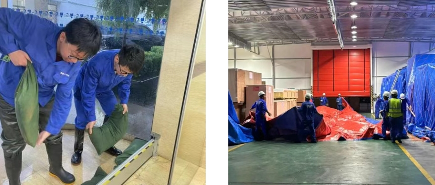 第一時間啟動防汛防臺緊急預案,向全體員工發出動員令。相關部門深入現場檢查設備設施,排除風險隱患。針對低洼易積水區域開展“竹節草”臺風前安全專項檢查,確保室外門能關盡關,同步組織排查所有易松動和易掉落物料的清理;在樓宇門口設置防汛沙袋,做好防水工作;在動力作業區,開展變電站防汛沙袋布置和水位檢查等,確?,F場安全。