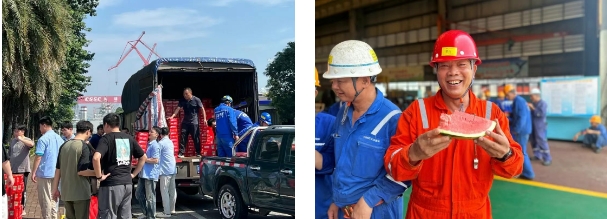 廣船國(guó)際始終將員工身心健康與安全生產(chǎn)放在首位,用科學(xué)調(diào)度、貼心保障的“組合拳”,撐起“清涼保護(hù)傘”。該公司向全體工會(huì)會(huì)員發(fā)放慰問(wèn)清涼飲料,做好防暑降溫工作,保障員工健康;所屬文沖修造常態(tài)化開(kāi)展“送清涼”活動(dòng),各部門(mén)自發(fā)熬煮糖水、派發(fā)西瓜,讓“清涼”直抵崗位、暖到心間。