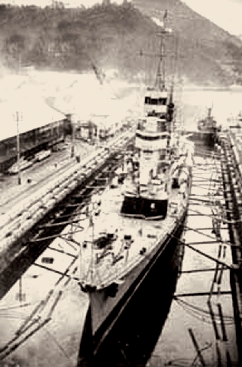 平海艦于船塢中裝配主炮
