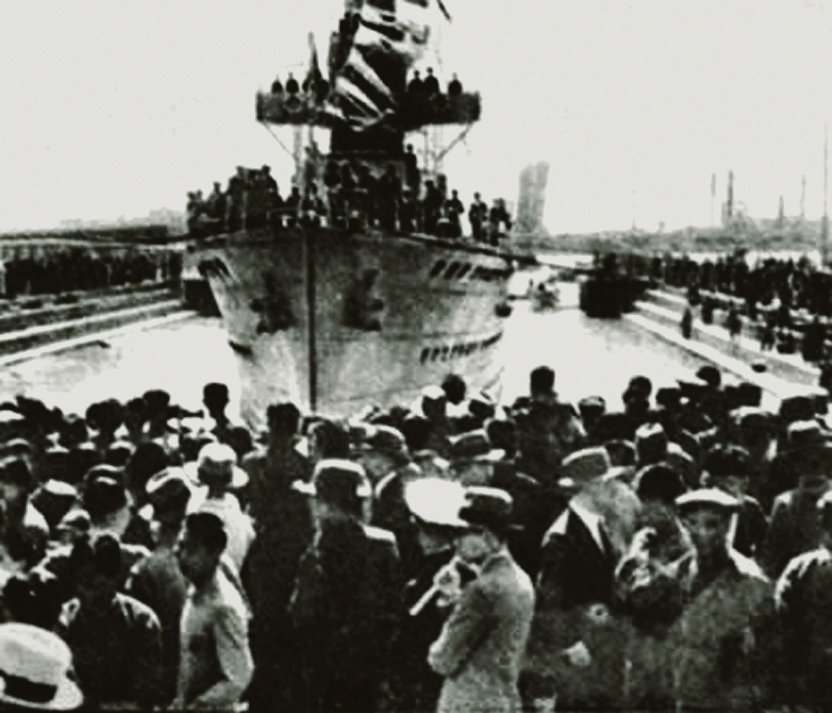 1928年8月16日午后,從上海老城廂西門通向江南造船的道路上,四處懸旗結彩。沿路張貼著“‘咸寧’下水是國民政府海軍的新建設”“鞏固海防、恢復海權”等標語。在江南造船廠區內臨江的一處船臺上,咸寧艦已經完工,靜靜地等待著下水的莊嚴一刻。這是江南造船為南京國民政府定制的第一艘軍艦。