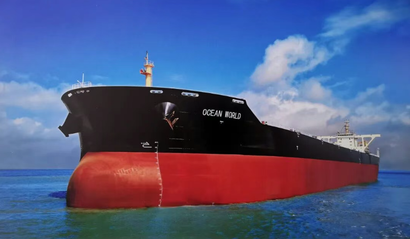 搭載七一一所軸帶發電系統和前置預旋導輪、消渦鰭、舵球、螺旋槳改型等節能裝置的23萬噸散貨船在航行中