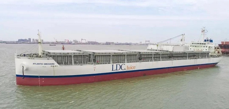 ????該船可以裝載19500立方米橙汁,大約重2萬噸,按照和水一樣的密度粗略計算,以裝滿500毫升一瓶為基準,該船滿載可裝4000萬瓶500毫升的橙汁,裝載運輸能力超強大!這艘船就好比一個海上移動的“大冰柜”,15個液貨罐均采用食品級絕緣不銹鋼材料,可裝載零攝氏度橙汁和零下10攝氏度濃縮橙汁,液貨艙始終保持低溫狀態,確保不受細菌污染。