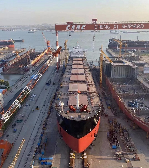 中船澄西建造的8.2萬噸散貨船提前3天下水