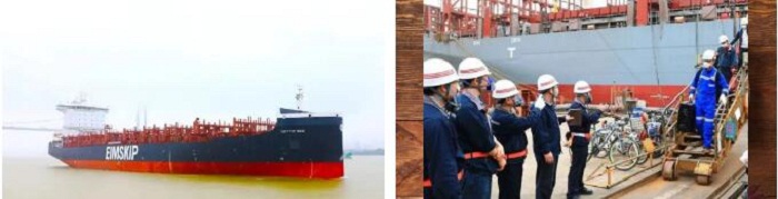 ?? H5647船是2150TEU(標(biāo)準(zhǔn)集裝箱)系列船的第三艘,總長179.4米,型寬30.95米,型深17.4米,滿載2150箱,設(shè)計(jì)吃水9米;配置了廢氣再循環(huán)(EGR)系統(tǒng)和脫硫系統(tǒng),可降低硫氮化合物的排放,滿足國際海事組織(IMO)Tier III 排放要求,是一艘綠色、環(huán)保的船舶。