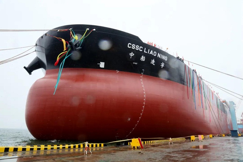 ????今天,中國船舶集團旗下大船集團為中船貿(mào)易所屬租賃公司建造的30.8萬噸超大型原油船“中船遼寧”號命名交付。“中船遼寧”號是大船集團自主開發(fā)的新一代極具市場競爭力的品牌船型。該船總長332.95米,型寬60米,最大載重量30.8萬噸,屬于無限航區(qū)船型,續(xù)航里程超過25000海里,在設計吃水20.5米可正常裝載200萬桶原油通過馬六甲海峽。