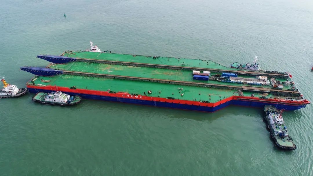 改造后的“海洋石油229”號(hào)導(dǎo)管架運(yùn)輸下水能力從30000噸提升至38500噸,可滿足高達(dá)302米、重達(dá)3萬噸的“海基一號(hào)”裝船、運(yùn)輸?shù)刃枨蟆?