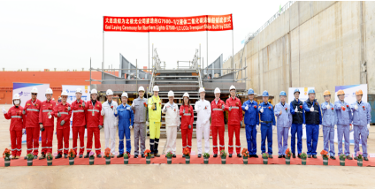 4月13日,1號(hào)船、2號(hào)船在中國(guó)船舶集團(tuán)旗下大連造船同日實(shí)現(xiàn)鋪底節(jié)點(diǎn)。