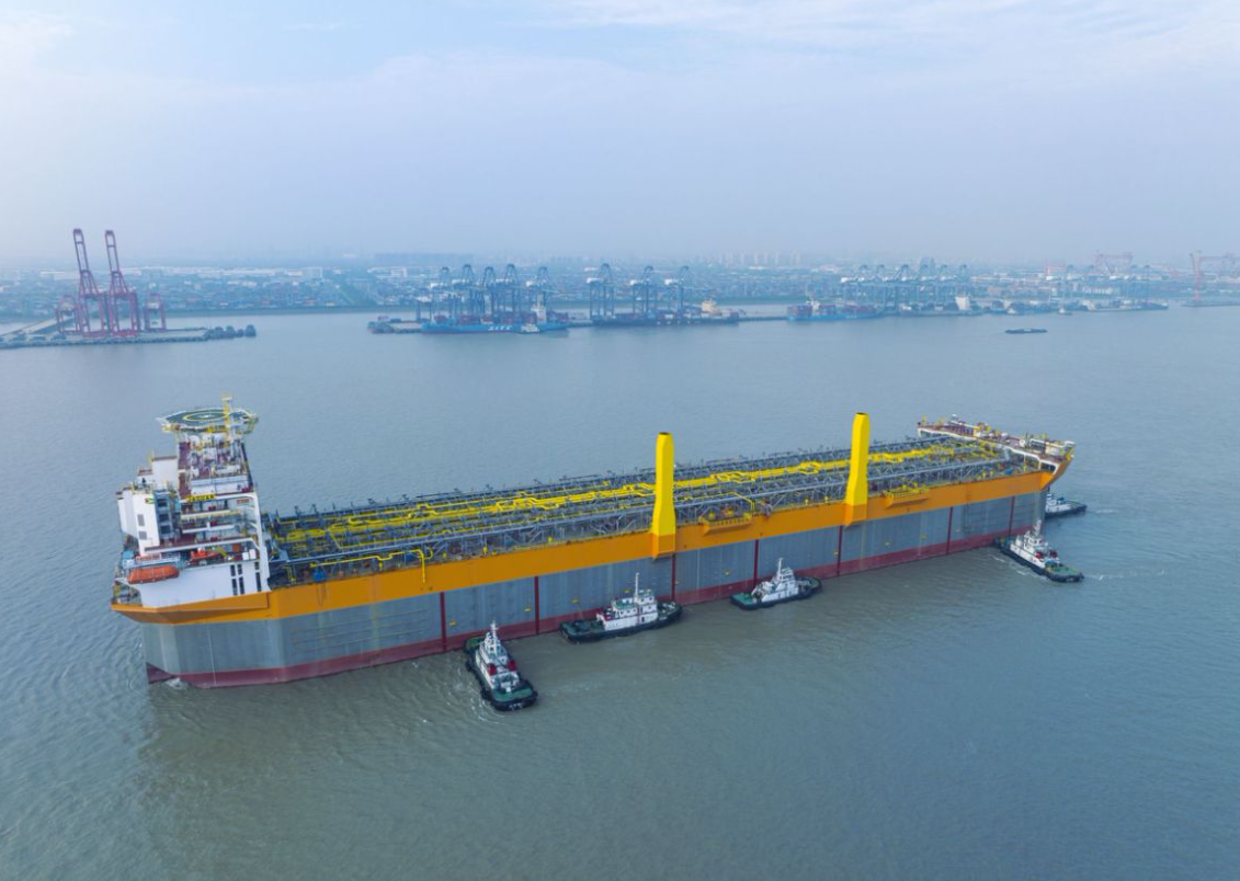 11月14日,由中國船舶集團旗下外高橋造船為荷蘭SBM OFFSHORE公司建造的第五艘世界獨創(chuàng)230萬桶通用型海上浮式生產(chǎn)儲油輪(FPSO)“捷豹”號簽字交付。