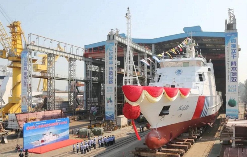 ????此次上船臺的大型海事巡邏船是我國噸位最大、功能最強(qiáng)的公務(wù)執(zhí)法船,可搭載多型直升機(jī),具備高海況的跨海區(qū)安全巡航及應(yīng)急搜救能力,建成后將作為我國深遠(yuǎn)海巡航救助一體化指揮旗艦,大幅提升我國海事綜合執(zhí)法水平,以及服務(wù)保障船舶航行安全能力。