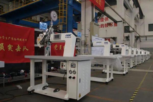 ????經過11晝夜的連續奮戰,中國船舶集團完成了N95口罩機、平面口罩機、壓條機等三型關鍵設備樣機試制工作,性能指標完全滿足設計要求,并全面鋪開量產設備的總裝調試,第15天就實現了量產設備交付,已交付壓條機、平面口罩機和超聲波點焊機50余臺套,滿足當前疫情防控工作的急需。在緊急馳援國資系統所屬企業相關設備需求的同時,面向全國抗疫戰場各類企事業單位提供相關設備,累計預訂口罩機110余臺、壓條機90余臺和超聲波點焊機340余套。