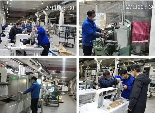 ????作為生產供貨單位,為了以最快速度擴大產能,八院鵬力智造公司黨支部向全體黨員發出“紅色集結令”,緊接著向全體員工發出“以鵬力速度,打造硬核組織”的戰時總動員倡議。大家紛紛主動請纓,加入這場攻關戰。在多數外協供應商無法正常復工的情況下,八院對內調動軍民品力量,對外協同主要外協供應商,組織近800人復工,共同落實自制件生產任務。為確保進度和質量,派專人到30多家外協單位進行督產。2月27日23點,八院首批壓條機交付。2月28日凌晨4點,八院首批平面口罩機交付。3月3日23點,八院首批N95口罩機交付。
