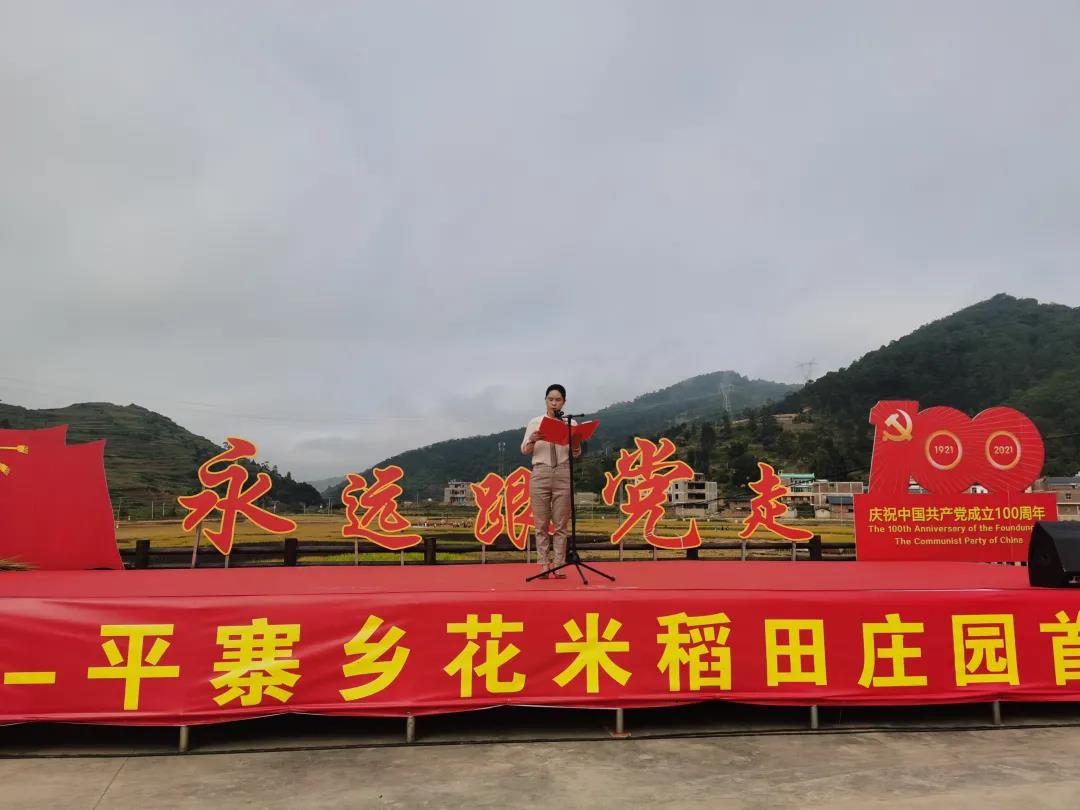 以節(jié)聚勢,以節(jié)聚產(chǎn),以節(jié)聚人,平寨鄉(xiāng)壯族百姓以獨(dú)特的方式,慶祝祖國生日,分享豐收喜悅,總結(jié)鞏固脫貧攻堅(jiān)成果與鄉(xiāng)村振興有效銜接經(jīng)驗(yàn),探索綠色發(fā)展、質(zhì)量發(fā)展新思路,實(shí)踐對(duì)口幫扶、內(nèi)生動(dòng)力資源增效新方法,構(gòu)建產(chǎn)業(yè)發(fā)展、農(nóng)旅融合鄉(xiāng)村振興新路徑,譜寫平寨發(fā)展新篇章。平寨鄉(xiāng)黨委書記陸華麗在開幕式致辭中指出,舉行花米稻田莊園首屆新米節(jié),是平寨鄉(xiāng)“以節(jié)聚勢,以節(jié)聚人,以節(jié)聚產(chǎn)”的重要舉措。近年來,平寨鄉(xiāng)堅(jiān)持黨建引領(lǐng),務(wù)實(shí)創(chuàng)新的工作作風(fēng),各項(xiàng)事業(yè)蓬勃發(fā)展。脫貧攻堅(jiān)勇創(chuàng)佳績,人居環(huán)境不斷改善,產(chǎn)業(yè)生態(tài)綠色發(fā)展,文化事業(yè)生機(jī)勃勃,民族團(tuán)結(jié)碩果累累,為鄉(xiāng)村振興戰(zhàn)略的實(shí)施打下了良好的基礎(chǔ)。