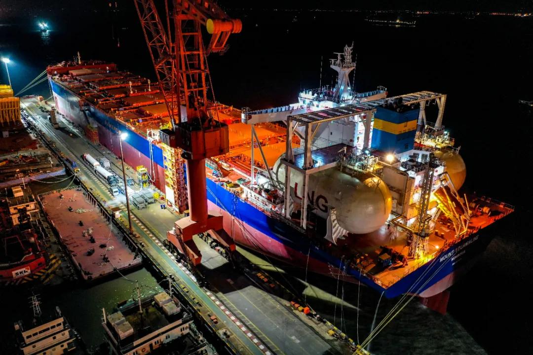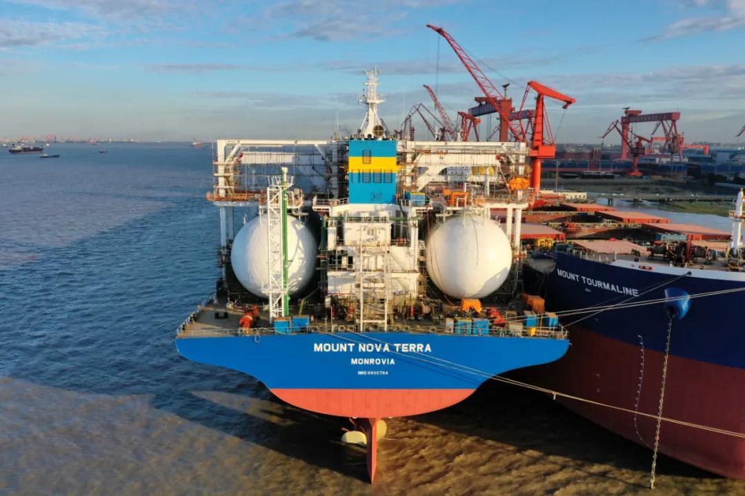 1月28日,中國船舶集團旗下外高橋造船自主研發(fā),攜手中船貿(mào)易,為新加坡EPS公司建造的全球首艘液化天然氣(LNG)雙燃料動力20.9萬載重噸紐卡斯?fàn)栃蜕⒇洿?